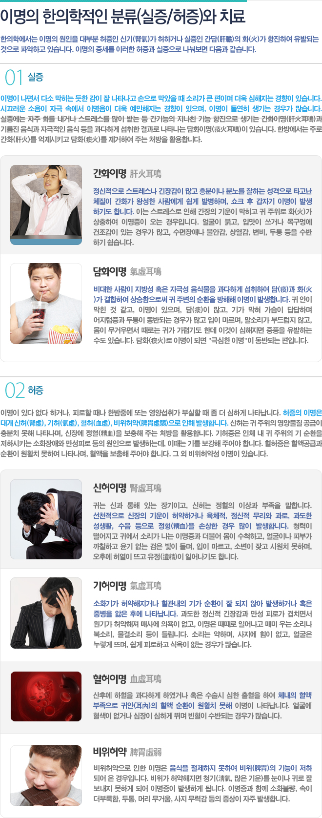[스트레스, 흥분 후 발생한 이명,간화이명, 肝火耳鳴) ] 비교적 젊은층에서 많이 발생하며, 고혈압이 있거나 체력이 좋은 노인분에서도 나타납니다. 스트레스를 많이 받는 직장인, 업무 상