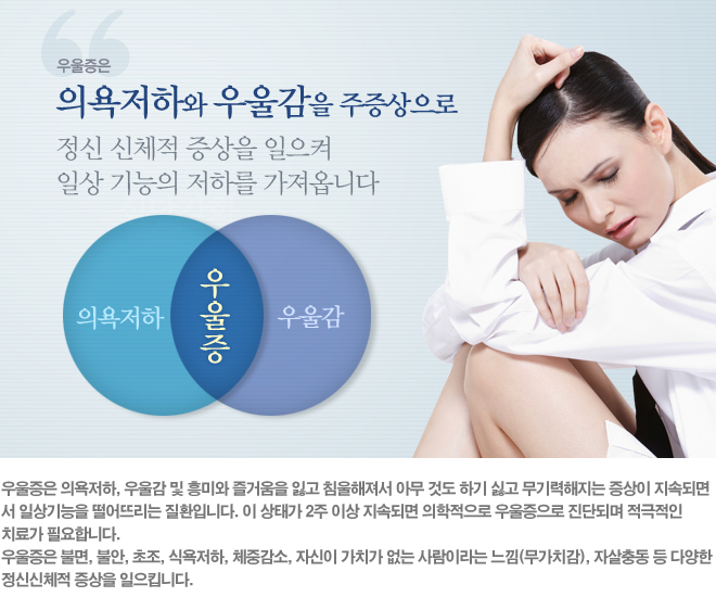 [ ¿ì¿ïÁõ ´ëÇ¥ Ä¡·á¹ý  - Çϳª·ÎѨ°æÈñÇÑÀÇ¿ø] ÀÇ¿å ÀúÇÏ¿Í ¿ì¿ï°¨À» ÁÖ Áõ»óÀ¸·Î Á¤½Å ½ÅüÀû Áõ»óÀ»
