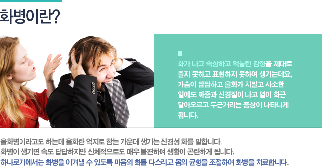 È­º´Àº ¾ï¿ïÇÏ°í ºÐÇÑ °¨Á¤À» Á¦´ë·Î Ç¥ÇöÇÏÁö ¸øÇÏ°í ¼ÓÀ¸·Î »èÀÎ ÀÌÈÄ¿¡ ³ªÅ¸´Â ÀÏÁ¾ÀÇ ºÐ³ë ÁõÈıºÀ¸·Î , ¨ç °¡½¿ ´ä´ä