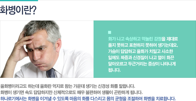 È­º´Àº ¾ï¿ïÇÏ°í ºÐÇÑ °¨Á¤À» Á¦´ë·Î Ç¥ÇöÇÏÁö ¸øÇÏ°í ¼ÓÀ¸·Î »èÀÎ ÀÌÈÄ¿¡ ³ªÅ¸´Â ÀÏÁ¾ÀÇ ºÐ³ë ÁõÈıºÀ¸·Î , ¨ç °¡½¿ ´ä´ä