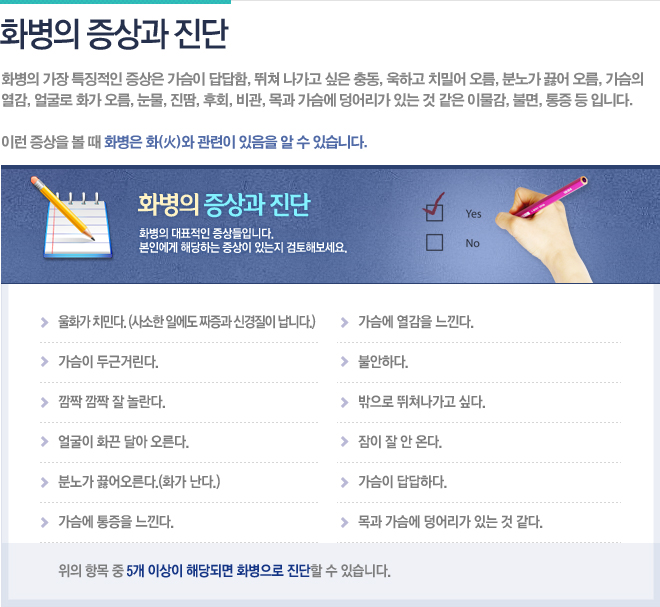 È­º´Àº ¾ï¿ïÇÏ°í ºÐÇÑ °¨Á¤À» Á¦´ë·Î Ç¥ÇöÇÏÁö ¸øÇÏ°í ¼ÓÀ¸·Î »èÀÎ ÀÌÈÄ¿¡ ³ªÅ¸´Â ÀÏÁ¾ÀÇ ºÐ³ë ÁõÈıºÀ¸·Î, ¨ç°¡½¿ ´ä´äÇÔ, ¨è¿ïÈ­°¡ Ä¡¹Ð¾î ¿À¸§, ¨é¾ï¿ïÇÏ°í ºÐÇÑ °¨Á¤, ¨ê¾ó